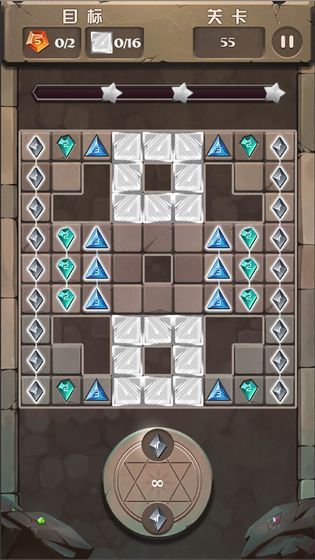 1、通过手指滑动屏幕点击关卡中的任意位置放置宝石;