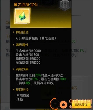 2、《翅膀技能石》 不少小伙伴在升级翅膀后,或许还不清楚翅膀能够镶嵌技能。商场中就有翅膀技能石出售,这些技能颇为强力。对于热衷于PVP的朋友而言,可以酌情挑选几个进行镶嵌。