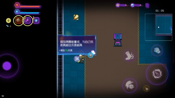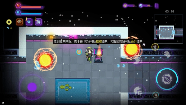 可以拾取其中的道具,破坏阻挡的障碍物。