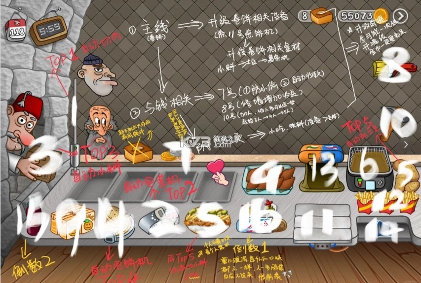 3.除设备店员以外的东西尽量越迟升越好(卷饼口味升级这个一定一定要放到最后超级好麻烦且很容易点错很锻炼大脑)