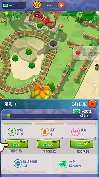 2.持续对各类公园设施进行升级,还能获取更多金币奖励。