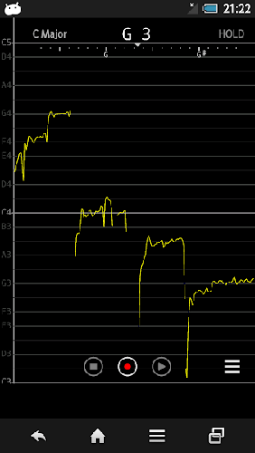 - 在屏幕的上部以书面形式显示目前的音阶。