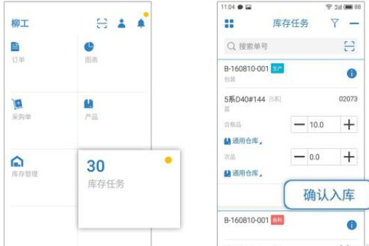 生产完成后,库管员会在手机移动端收到成品入库通知,核对好产品及数量后点击【确认入库】便完成了相应任务。