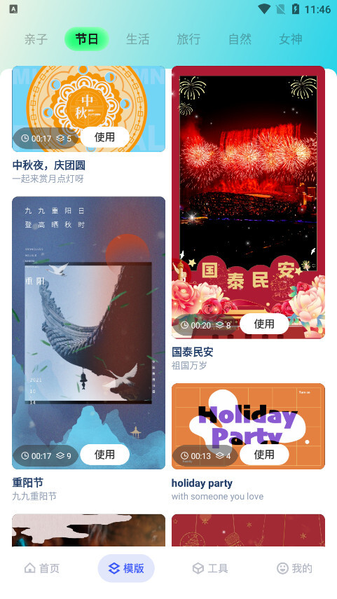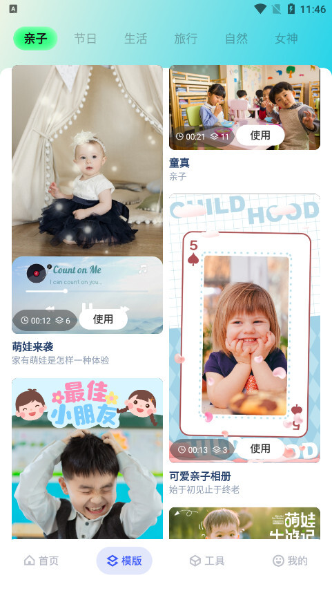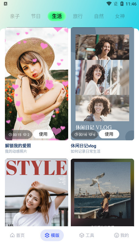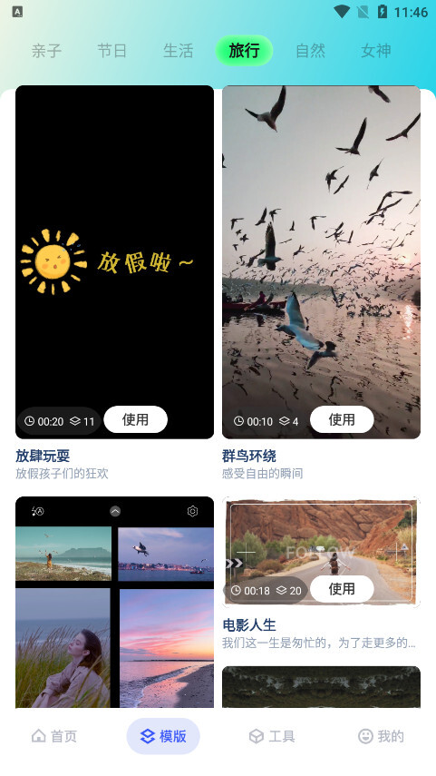 模板:导入照片视频一键生成。卡点模板素材持续更新,涵盖创意、搞怪、抖音热门类型,还能制作音乐
