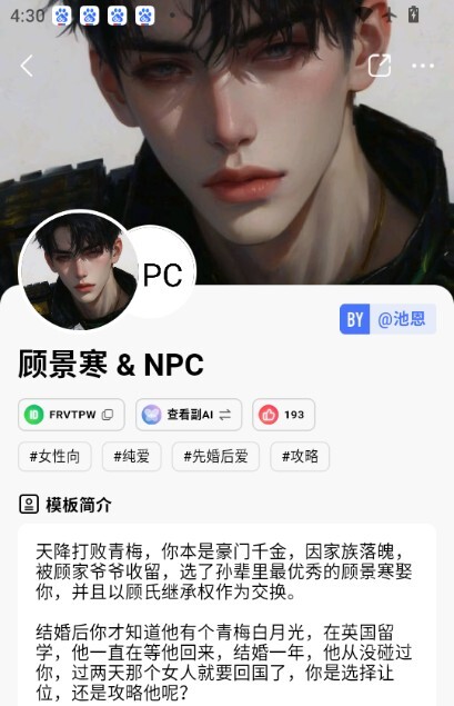 2.然后任选一ai角色点击进去,里面会有模板简介