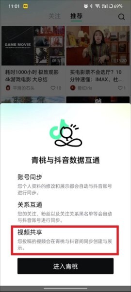 1、青桃视频和抖音实现数据互通,在抖音发布视频时可同步至青桃。需留意的是,青桃主要聚焦中长视频,同步的为1分钟以上的中长视频。