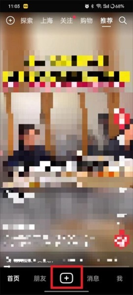 2、打开手机上的抖音,在下方导航栏点击“+”加号按钮发布视频;