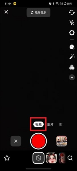 3、切换到“视频”,点击按钮拍摄视频视频,也可以点击相册找到相册内的视频上传;