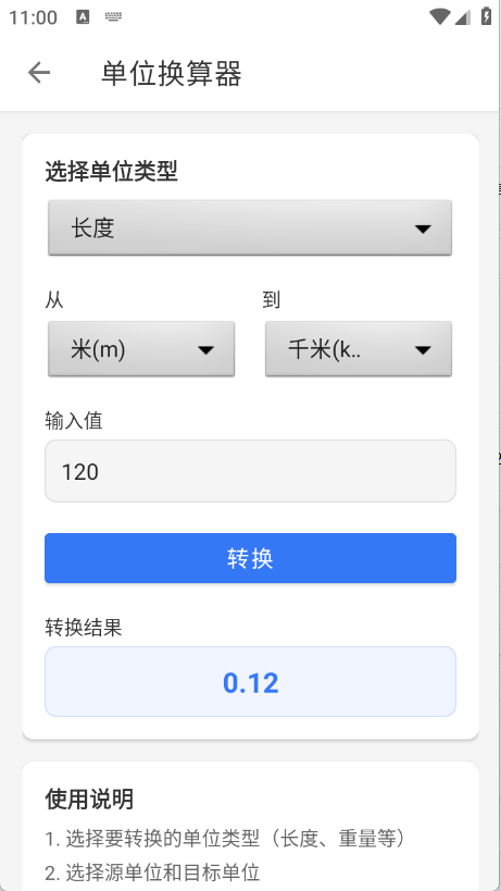 5.选择单位类型,输入数值点击“转换”即可