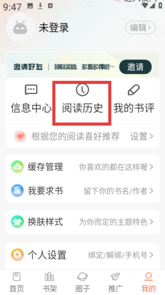 2、接着点击“阅读历史”,如图所示。