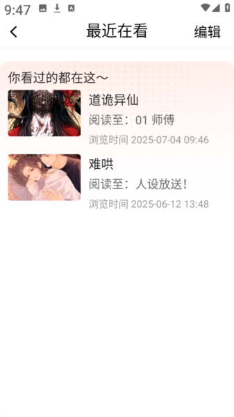 3、如此一来,便能实时查看近期的漫画阅读历史。