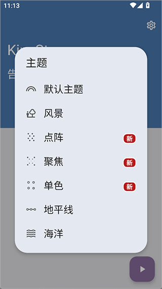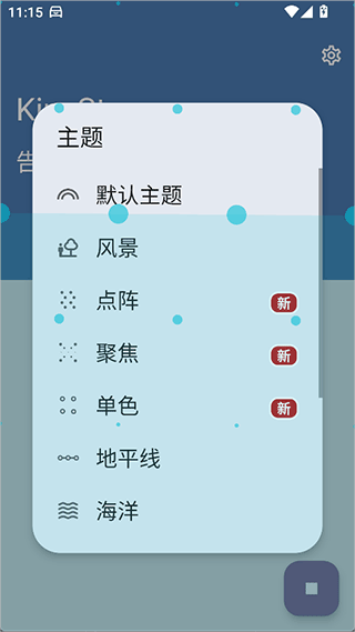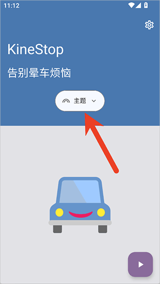 1、打开后无需注册登录,核心的防晕车功能是免费使用的,在使用时可以先在中点击【主题】;