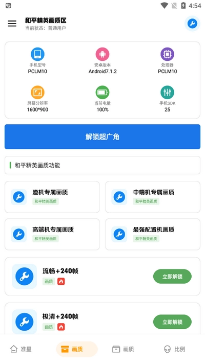 即使是低配置手机,也能在雨泽工具箱软件里顺利调整吃鸡游戏画质。该软件会先识别您手机的机型、系统版本、处理器、屏幕分辨率以及当前电量,然后为您推荐合适的画质选项。