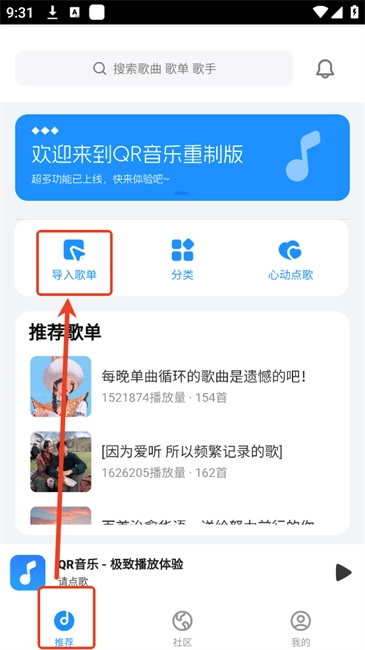 1. 打开软件后,点击【首页】中的“导入歌单”选项。