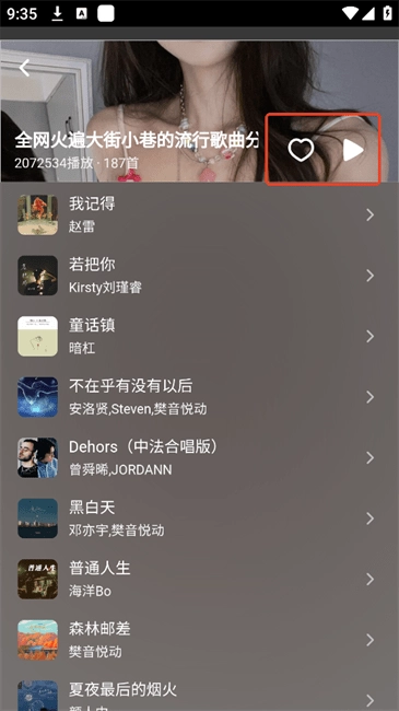 3. 稍作等待,待其加载完成,就能看到相应歌单,随后可对歌单进行收藏或播放操作。