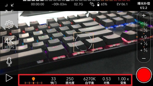1、进入软件之后可以看到界面都是一些专业的摄像参数,大家可以根据下面来调节;