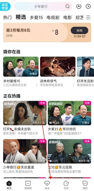 1、首先打开软件,在优酷的首页界面,点击会员