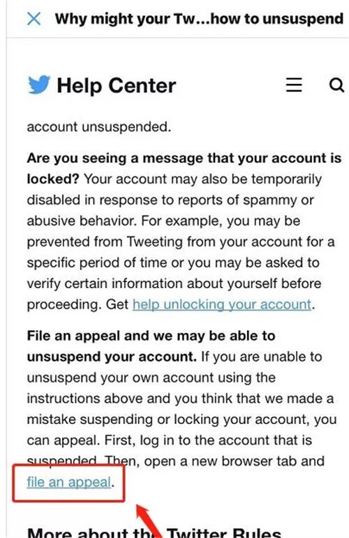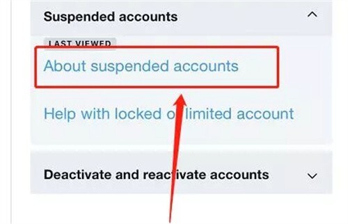 5、点击‘关于封禁账号About suspended accounts’。