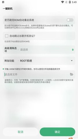 3、根据个人需要,对页面内的功能进行设置,点击【确定】开始刷机。