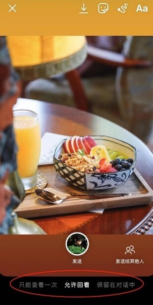- 「允许回看」:可重复播放,对方能在消失前开启并回放照片或视频一次。