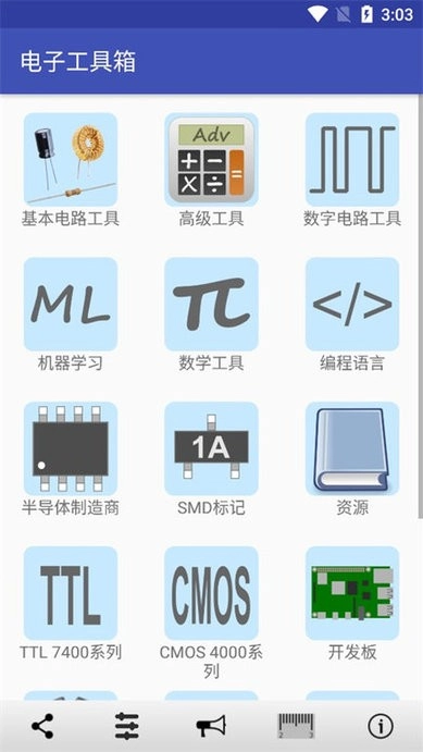 电子工具箱是一款超实用的手机电子小工具集合,内含丰富多样的实用小部件。都有啥呢?像电阻颜色代码工具、并联电阻器计算工具、LED电阻计算器、分压器计算工具、并联电容器计算工具、逻辑门表查询工具、串联电容器计算工具、单位转换器、7段显示表、ASCII表、电阻率表等等。借助这些,大家能快速调用工具与计算器,完成各类电子相关公式的计算,还能便捷查询电子表等。正因如此,这款工具箱基本能满足你在电子方面的大部分需求,特别推荐给相关专业人士使用。