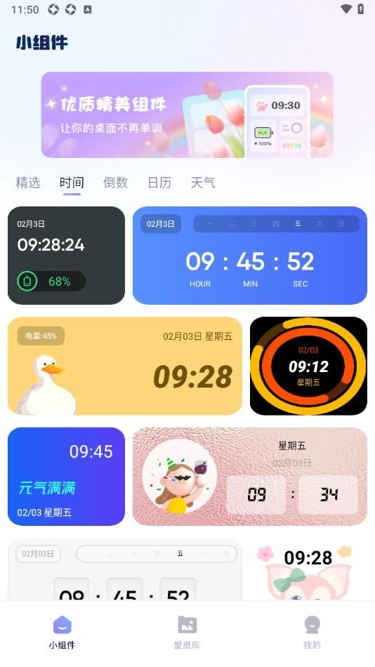 2. 能够免费获取各类小组件素材,充分满足用户在时间、倒数、日历、天气等方面的各种设置需求。