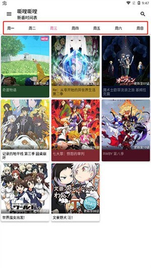 1. 打开嘶哩嘶哩,映入眼帘的是每周动漫时间表。打开后,系统会自动定位到当前日期,这样大家就能知晓今天更新了哪些动漫。