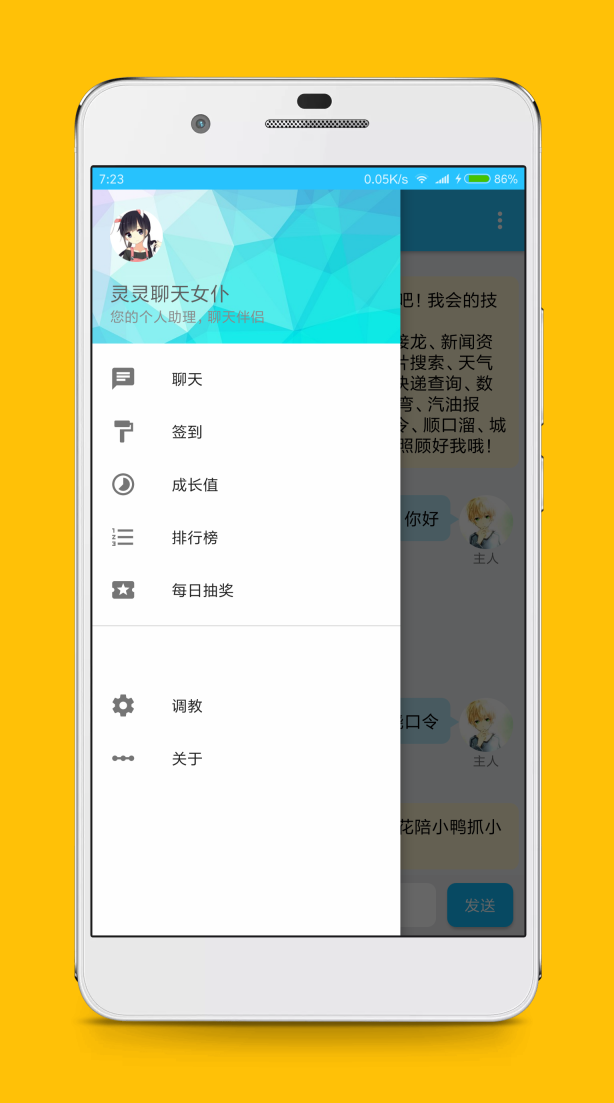 灵灵聊天女仆,一款智能机器人聊天应用。除了正常聊天外,灵灵聊天女仆会的技能还有: