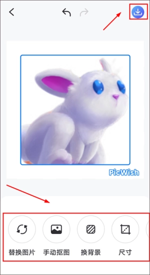3、图片抠图成功后,用户可以根据自己的需求,对图片进行换背景,裁剪尺寸,加阴影等操作,改动完成后,点击【保存】即可保存在手机内。