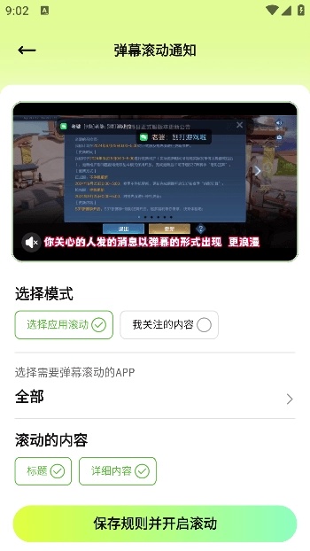 弹幕滚动通知:对于特别关心的人,可以设置弹幕滚动通知。