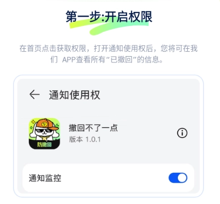 第一步:开启权限在首页点击获取权限,打开通知使用权后,您将可在我们查看所有“已撤回“的信息。