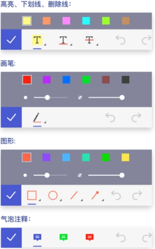 2、每一款注释工具都能自由选择颜色;在此之中,画笔和图形能够调节粗细与透明度。