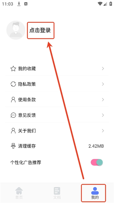 1. 找到【我的】选项,点击其中的“点击登录”,即可进行账号的注册或登录操作。