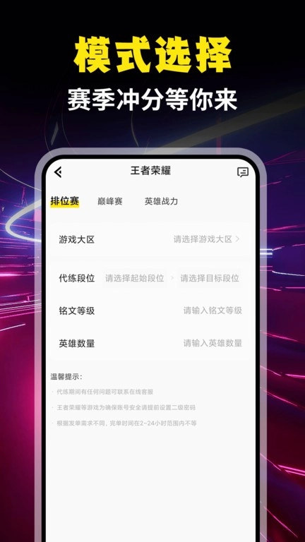 提供游戏段位、英雄数量以及铭文等级,保证排位巅峰胜率。